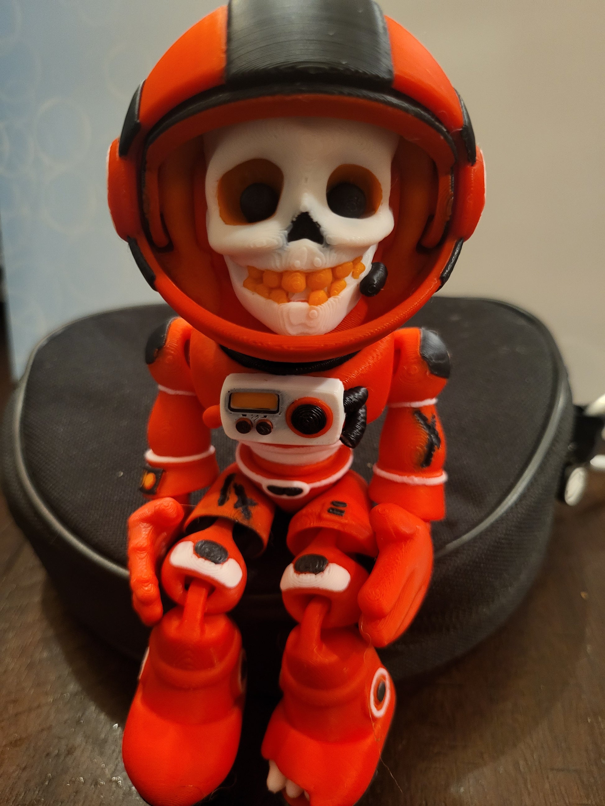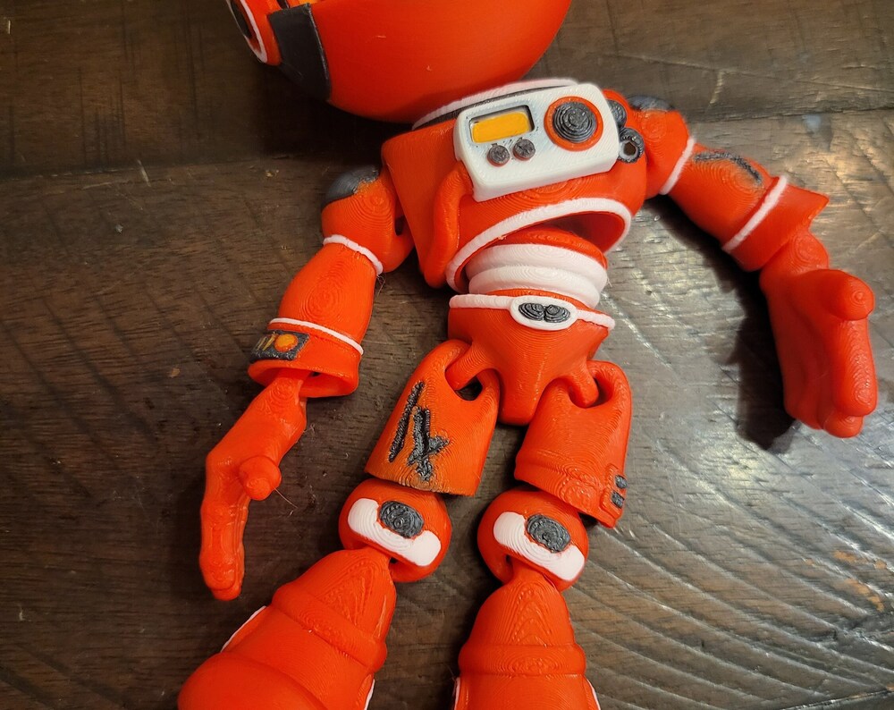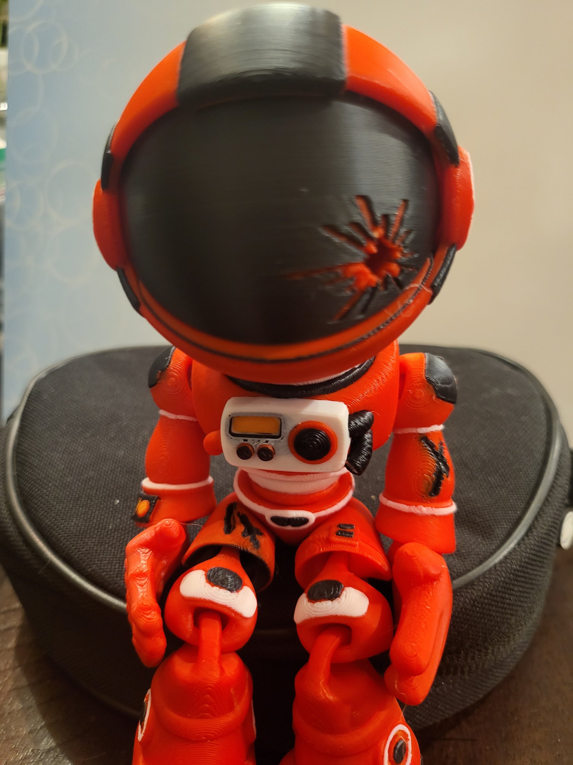 This wonderful flexible astronaut had an unfortunate accident! Now he is your decoration! All of the joints are flexi, including his waist. His visor also opens and closes! Posable.